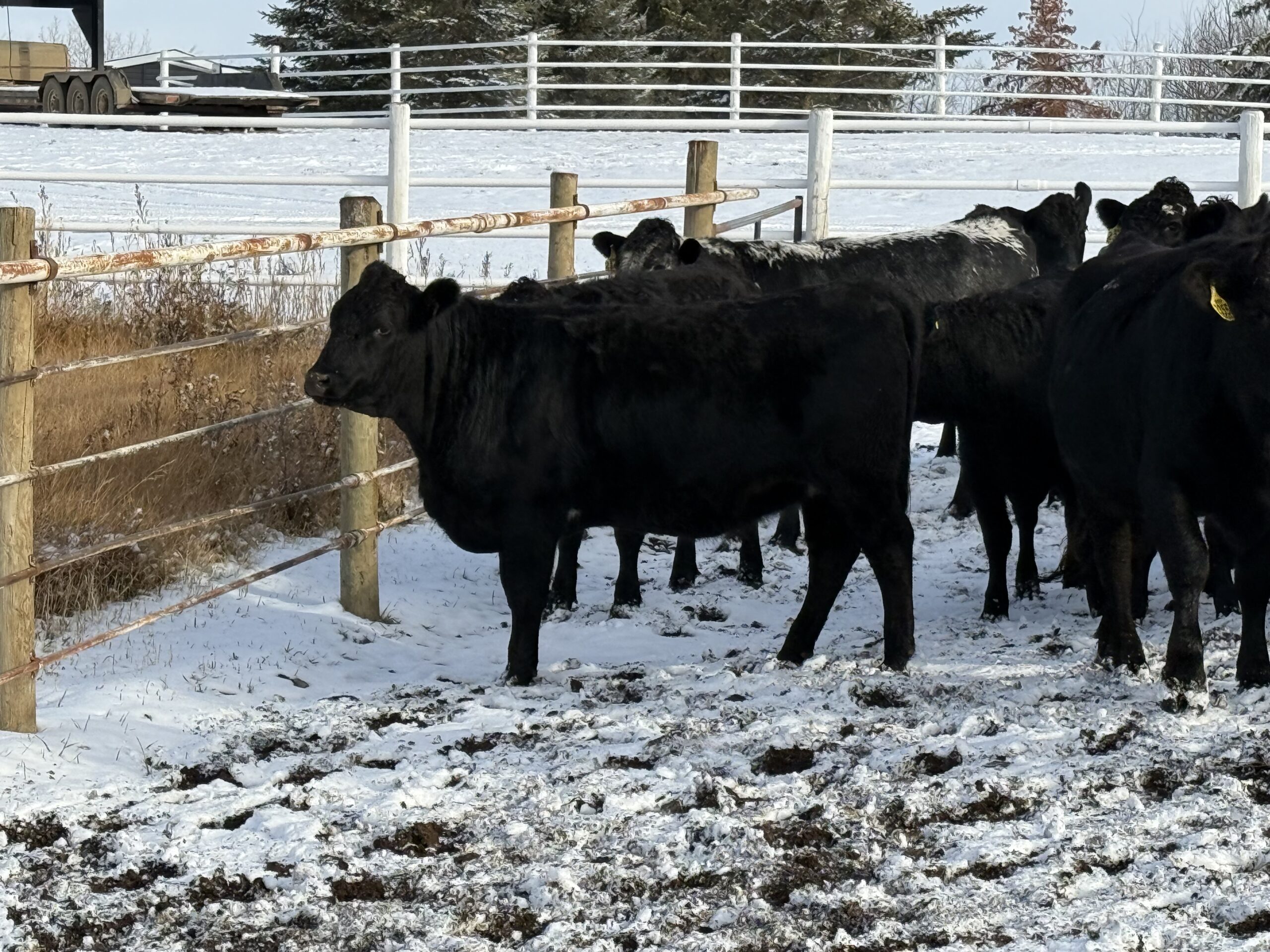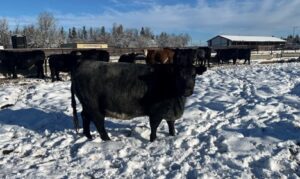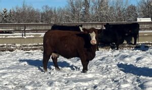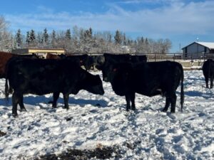30 Simm X Angus bred heifers. Double vaccinated last fall and pre-breeding with Pyramid 5 presponse and Fermicon 7/Somnugen. Bred Red & Black Angus – bulls turned out May 6th – Aug 14th. Very quiet set!