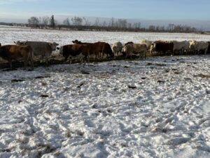 75 mixed cows exposed to Black & Red Angus and Simmental bulls. Bulls turned out May 28th and pulled July 25th. Full herd health. 3rd – 6th calvers. Received BoviShield Gold and blackleg.