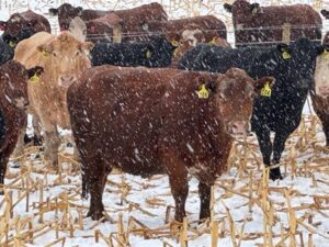 350 bred cows. January/February calvers. Mostly black and red cows with a few tans. Full herd health up to date.