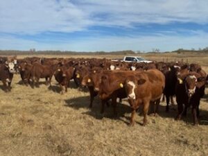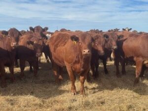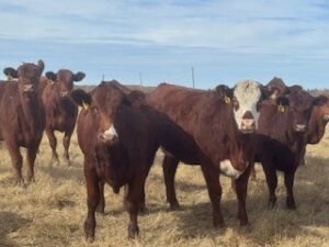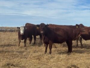 80 Red heifers bred to Bellshill Red Angus bulls. Bulls turned out on June 20th with a 60-day exposure. Heifers were fully vaccinated prior to breeding.