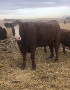 31 Charolais X bred heifers bred to 70lb bw Red Angus bull from KC Stock Farms. Bull has been used on heifers for the last 2 years and is proven to calve very easy. Turned out June 16th to start calving end of March. 60-day exposure.