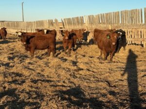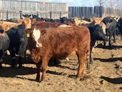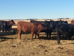 31 Charolais X bred heifers bred to 70lb bw Red Angus bull from KC Stock Farms. Bull has been used on heifers for the last 2 years and is proven to calve very easy. Turned out June 16th to start calving end of March. 60-day exposure.